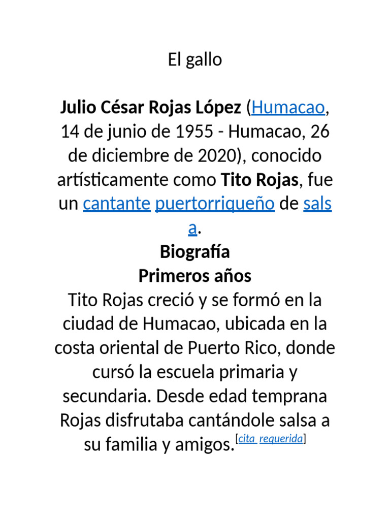 artísticamente como Tito Rojas, fue