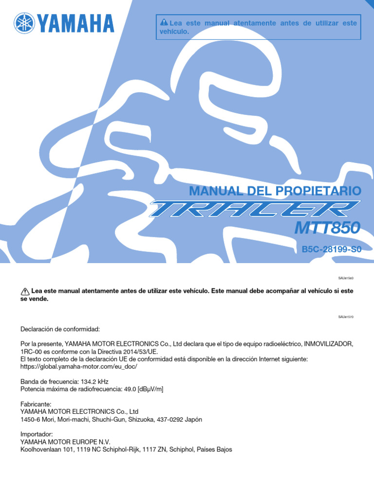 Lea este manual atentamente y en su totalidad antes de utilizar esta motocicleta.