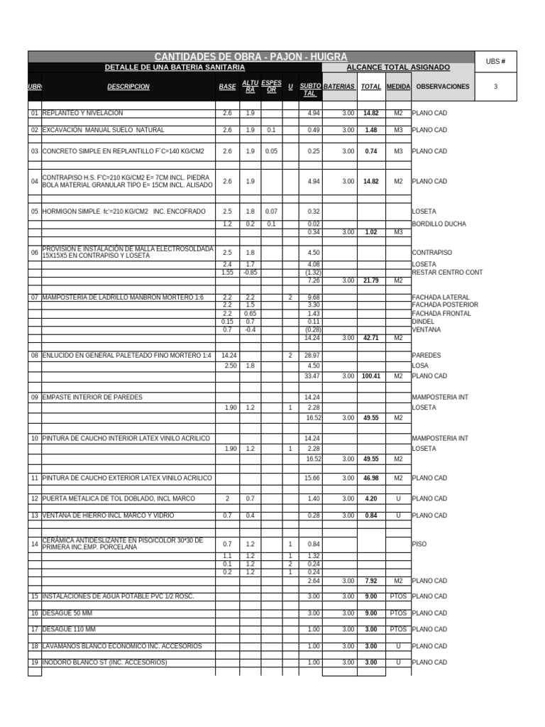 CANTIDADES DE OBRA - PAJON - HUIGRA UBS #