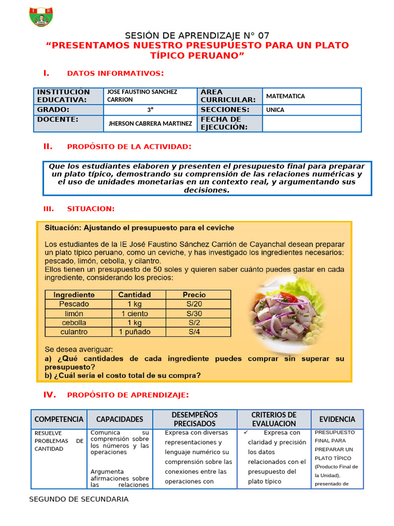 SESIÓN DE APRENDIZAJE N° 07