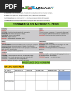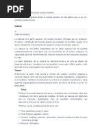 El documento presenta una lista de partes del cuerpo humano, organizadas en categorías como extremidades superiores e inferiores, así como características faciales. Incluye términos como ojos, orejas, boca, y extremidades como manos, brazos y piernas. Es un esquema básico de la anatomía humana.