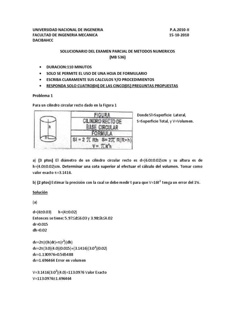 SOLUCIONARIO DEL EXAMEN PARCIAL DE METODOS NUMERICOS