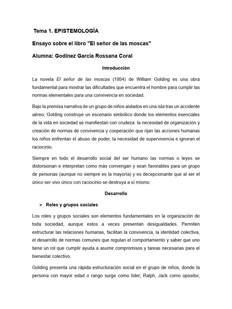Ensayo sobre el libro "El señor de las moscas"