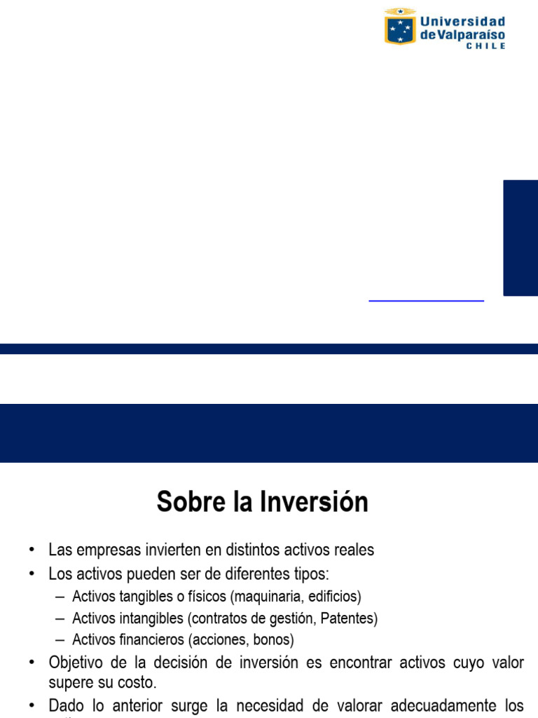 • Objetivo de la decisión de inversión es encontrar activos cuyo valor