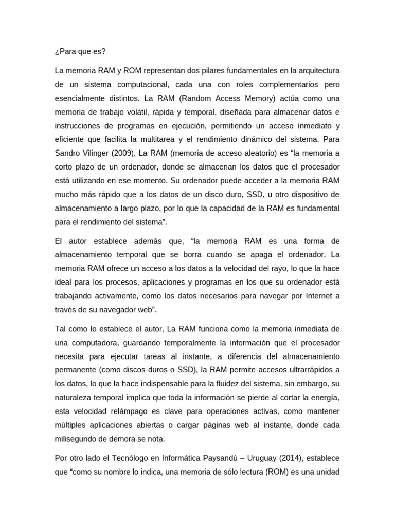 Sandro Vilinger (2009), La RAM (memoria de acceso aleatorio) es “la memoria a