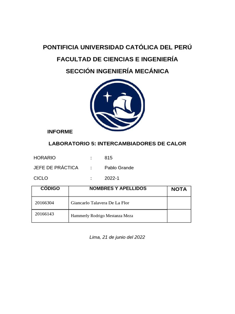 LABORATORIO 5: INTERCAMBIADORES DE CALOR