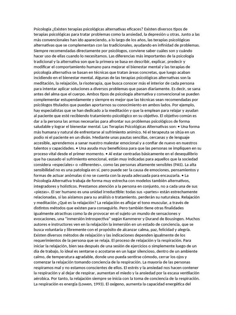 saludable y lograr el bienestar mental. Las Terapias Psicológicas Alternativas son: • Una forma