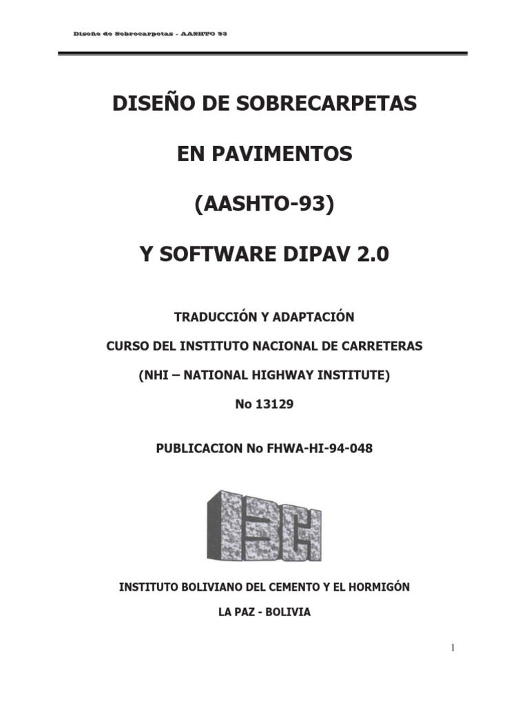 DISEO DE SOBRECARPETAS EN PAVIMENTOS (AASHTO-93) Y SOFTWARE DIPAV 2.0