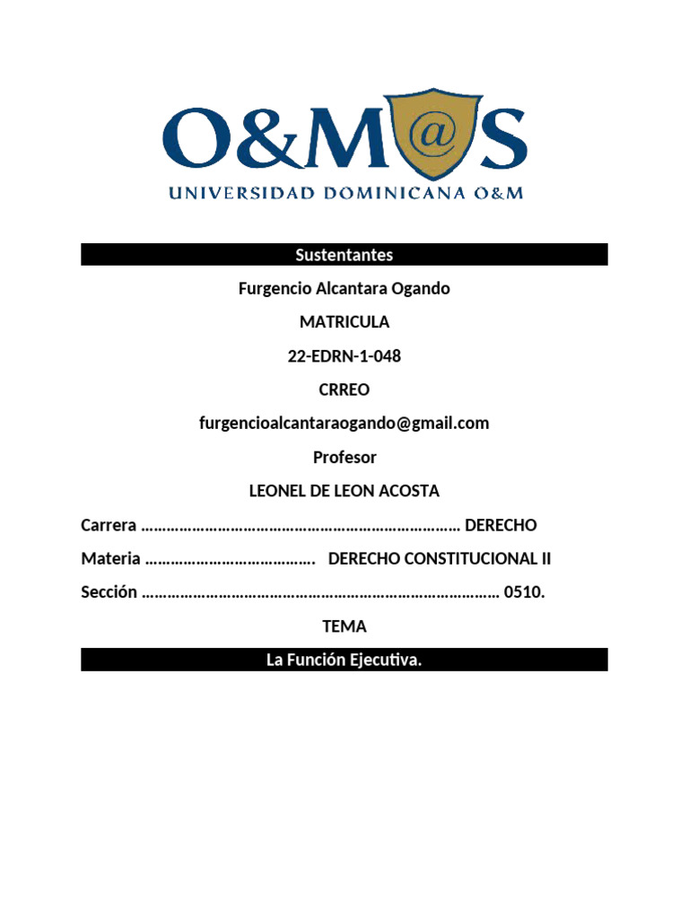 De conformidad con las Constitucion dominicana y las leyes el ejercicio ejecutivo