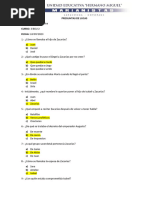 41. Cuntos das despus de Pascua se celebra Pentecosts? ________ 42. Qu discpulo ocup el lugar de Judas Iscariote entre los apstoles? _____ 43. Hacia qu ciudad se diriga Saulo cuando se le apareci Jess? _______ 44. En qu ciudad se llamaron los discpulos por primera vez cristianos? ___ 45. Qu significa la palabra Evangelio? ________ 46. Cuntos libros constituyen el Nuevo Testamento? _______ 47. Cuntos son los evangelios sinpticos? _________. 48. Cules son los evangelios sinpticos? _________. 49. Qu otro libro escribi el tercer evangelista? ______. 50. Cul es el ltimo libro de la Biblia? _____. 51. Cul es el smbolo de Juan? ___________ 52. Cul es el smbolo de Marcos? _________. 53. Apstol que ms cartas escribi en el N.T. _____ 54. De dnde era natural Pablo? _______________ 55. Cul es el primer mrtir del cristianismo? _______
