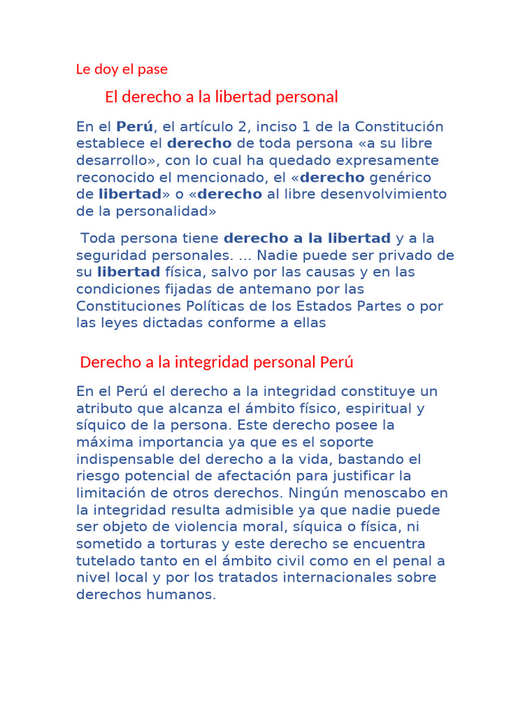 En el Perú, el artículo 2, inciso 1 de la Constitución