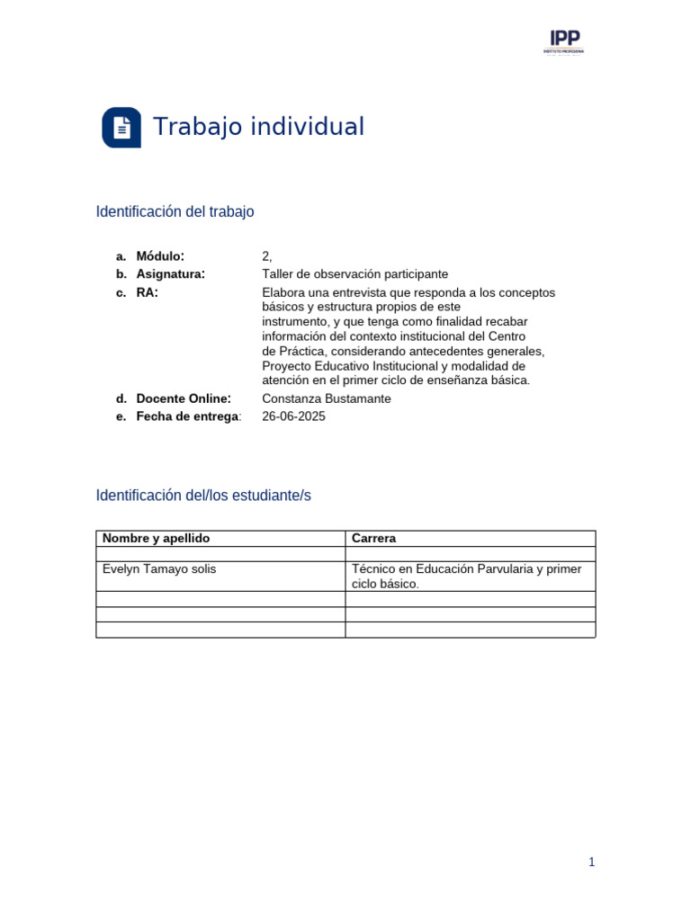 Evelyn Tamayo solis Técnico en Educación Parvularia y primer