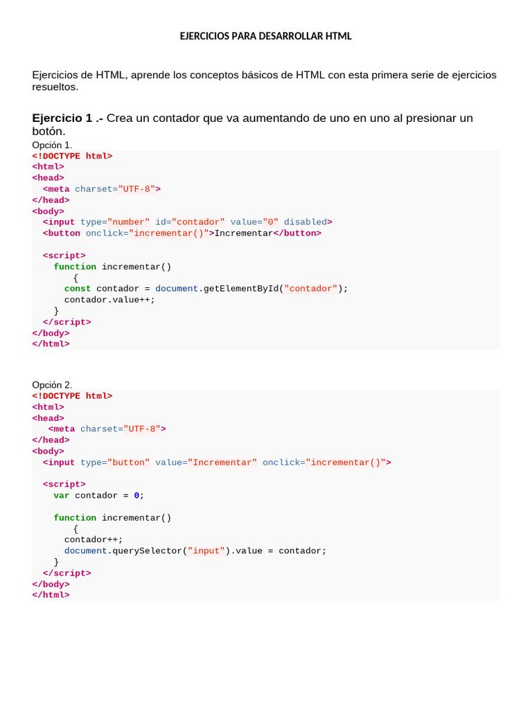 EJERCICIOS PARA DESARROLLAR HTML