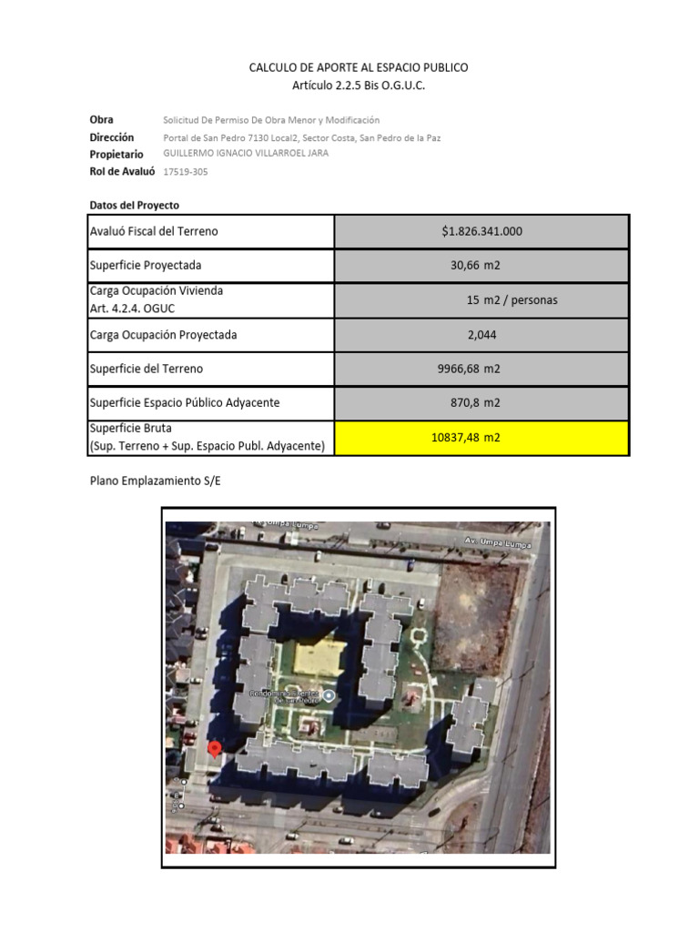 CALCULO DE APORTE AL ESPACIO PUBLICO