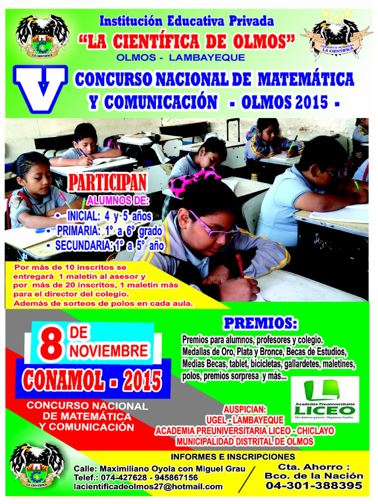 La Institución Educativa Privada LA CIENTÍFICA DE OLMOS, organiza el V Concurso