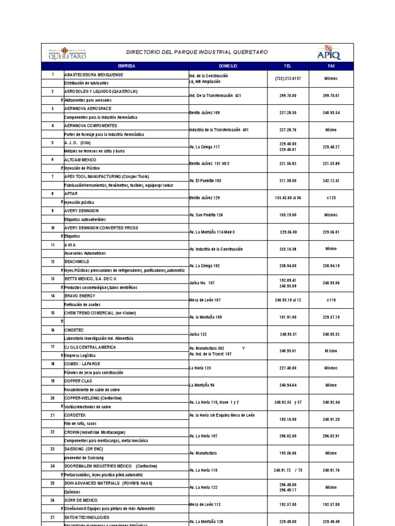 DIRECTORIO DEL PARQUE INDUSTRIAL QUERETARO