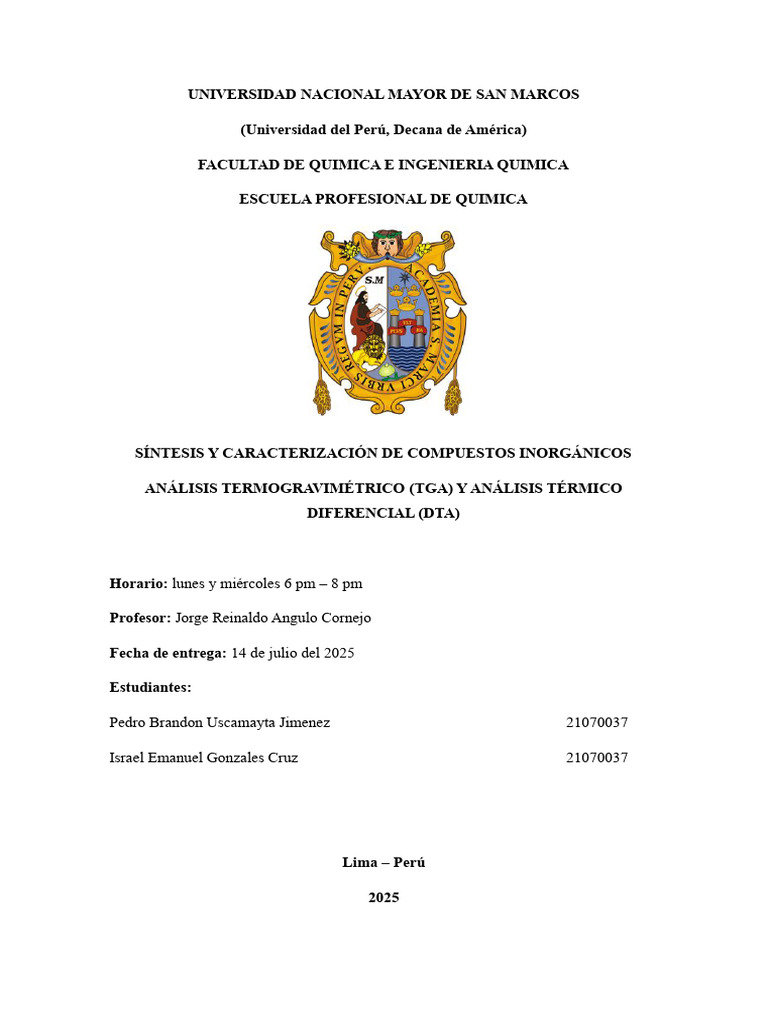 El presente informe tiene como finalidad estudiar y analizar dos técnicas termoanalíticas