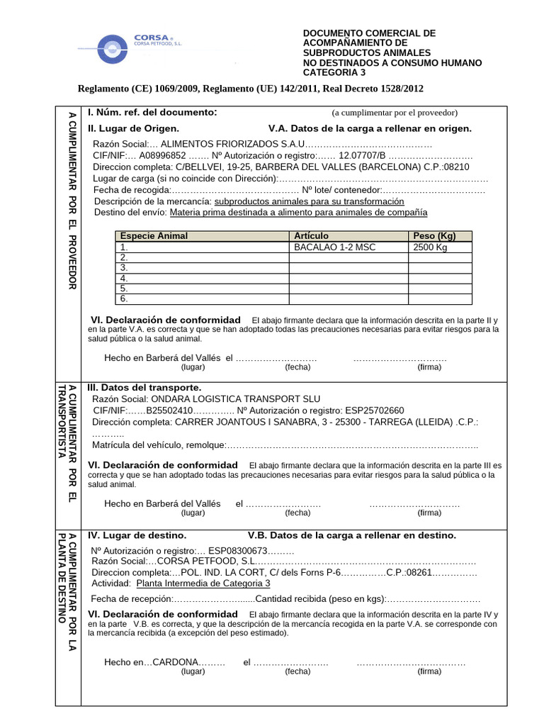 Razón Social:…CORSA PETFOOD, S.L.………………………………………………………………