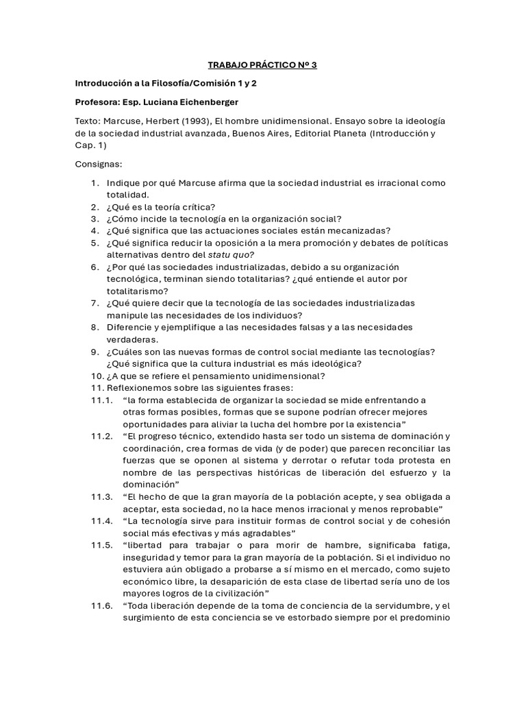 1. Indique por qué Marcuse afirma que la sociedad industrial es irracional como
