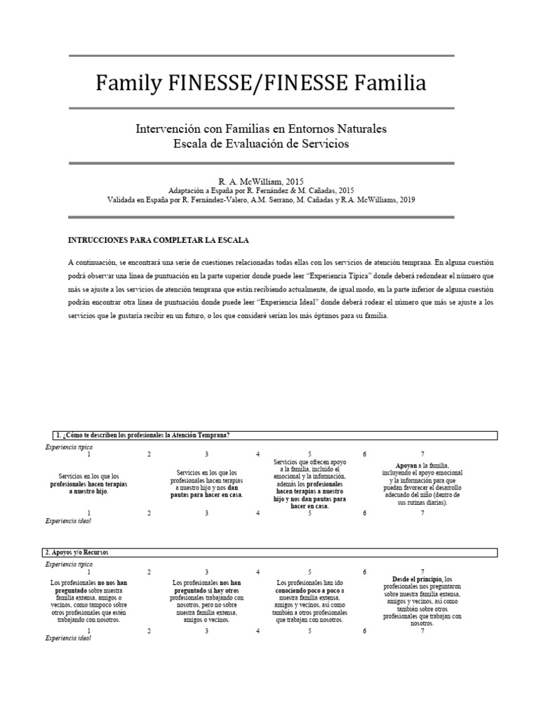 Validada en España por R. Fernández-Valero, A.M. Serrano, M. Cañadas y R.A. McWilliams, 2019