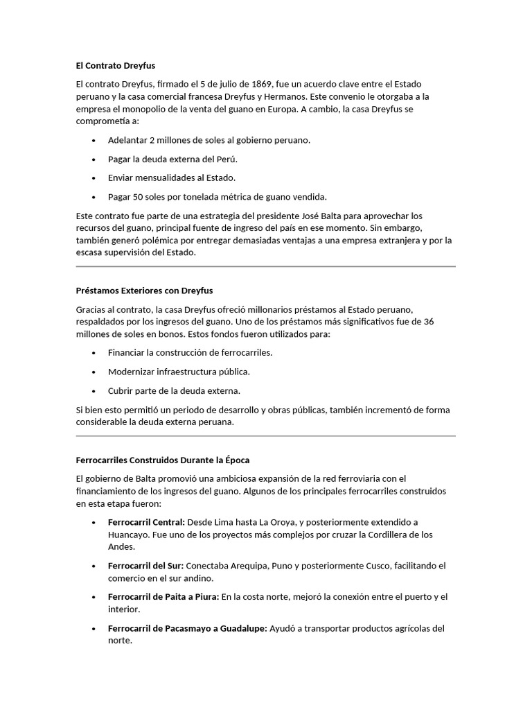 Este contrato fue parte de una estrategia del presidente José Balta para aprovechar los