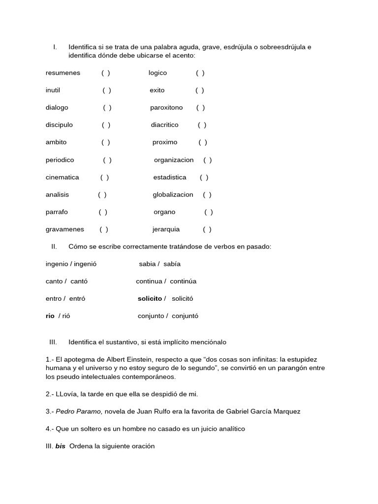 III. Identifica el sustantivo, si está implícito menciónalo
