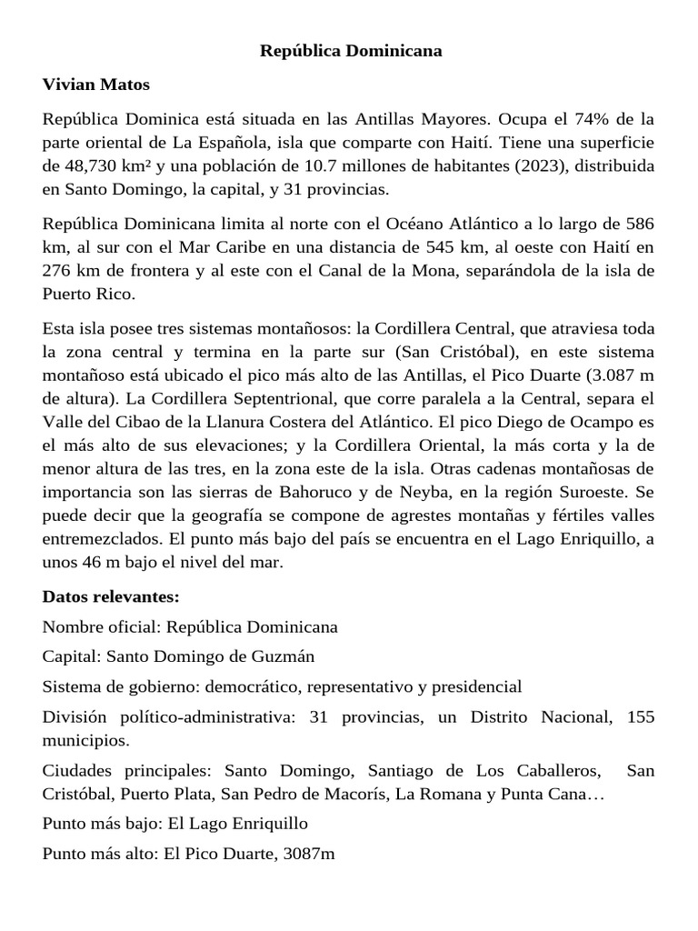 República Dominica está situada en las Antillas Mayores. Ocupa el 74% de la