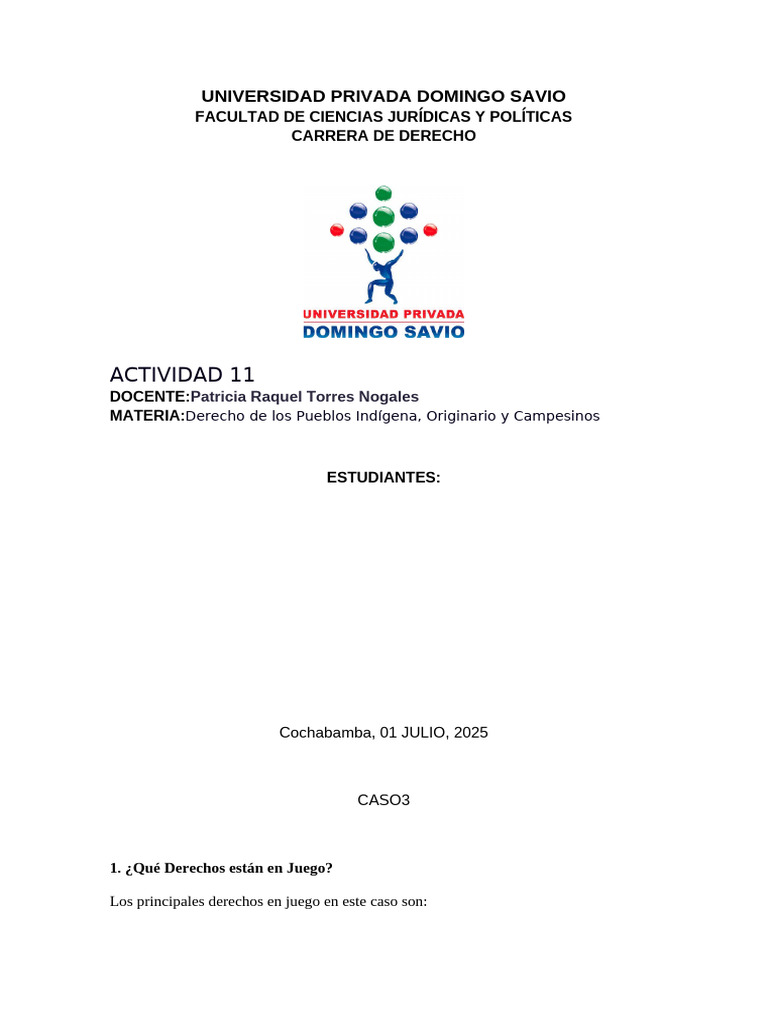 MATERIA:Derecho de los Pueblos Indígena, Originario y Campesinos