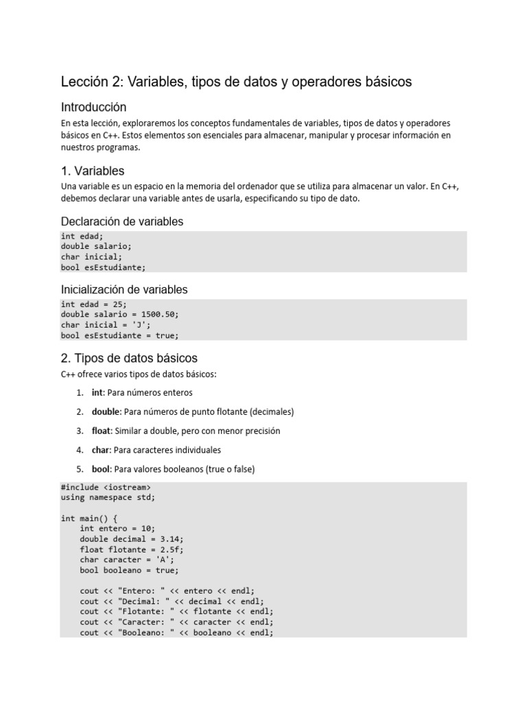básicos en C++. Estos elementos son esenciales para almacenar, manipular y procesar información en