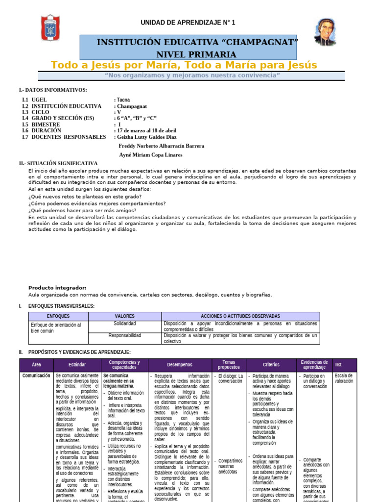 I.4 GRADO Y SECCIÓN (ES) : 6 “A”, “B” y “C”