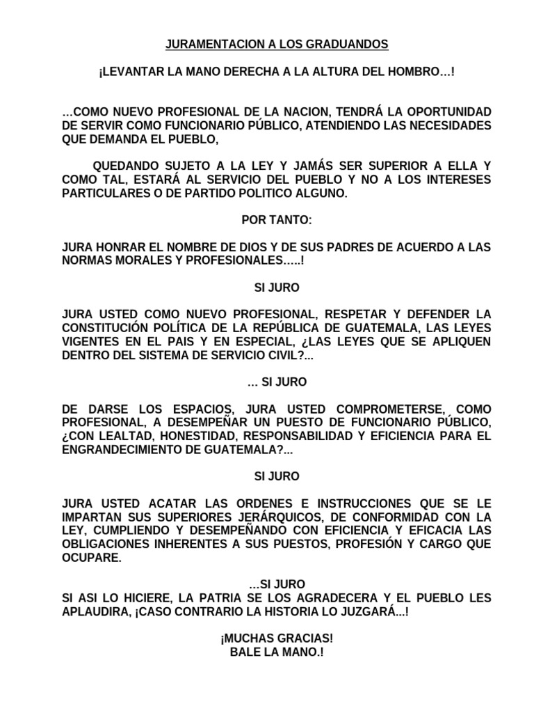 JURA USTED COMO NUEVO PROFESIONAL, RESPETAR Y DEFENDER LA
