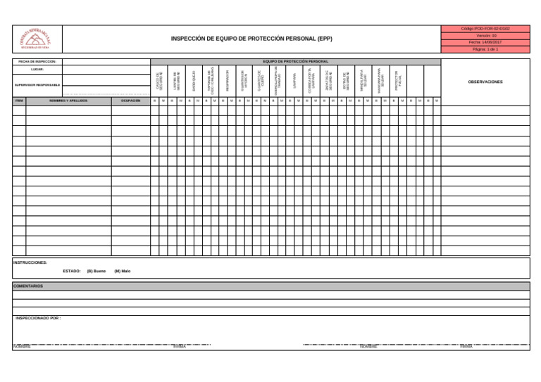 INSPECCIÓN DE EQUIPO DE PROTECCIÓN PERSONAL (EPP)