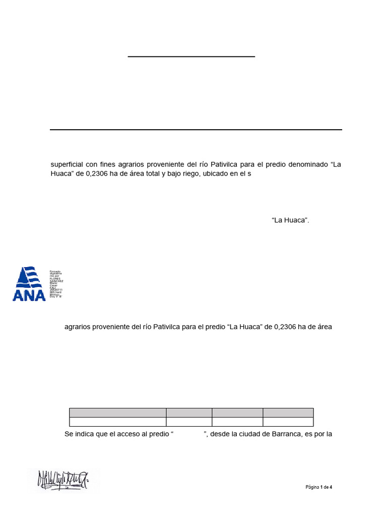 agrarios proveniente del río Pativilca para el predio “La Huaca” de 0,2306 ha de área