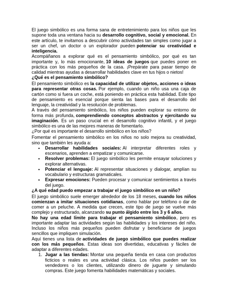 imaginación. Es un paso crucial en el desarrollo cognitivo infantil, y el juego
