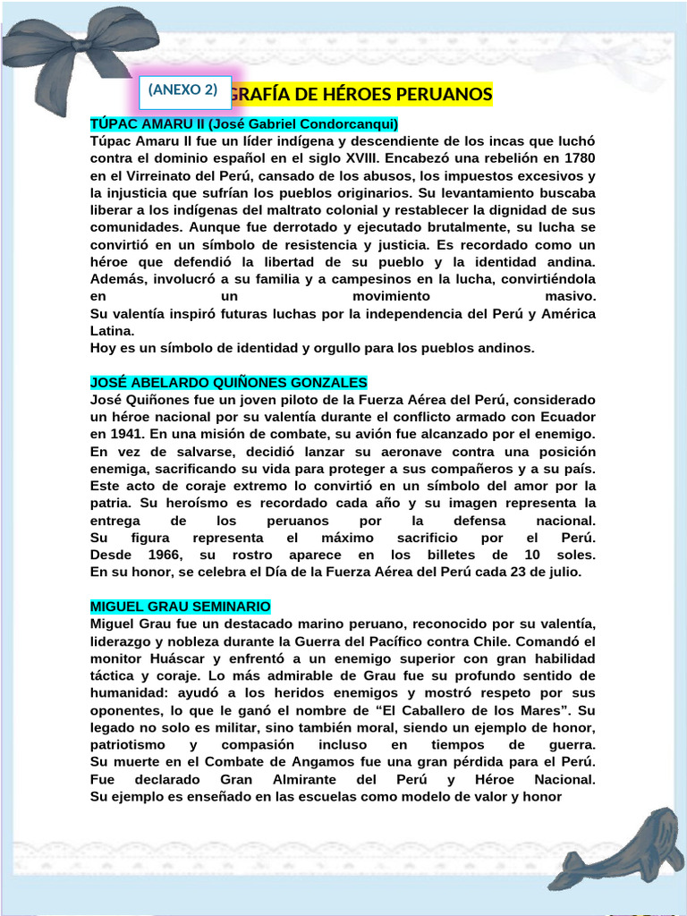5. ( ) José Quiñones es recordado cada 28 de julio.