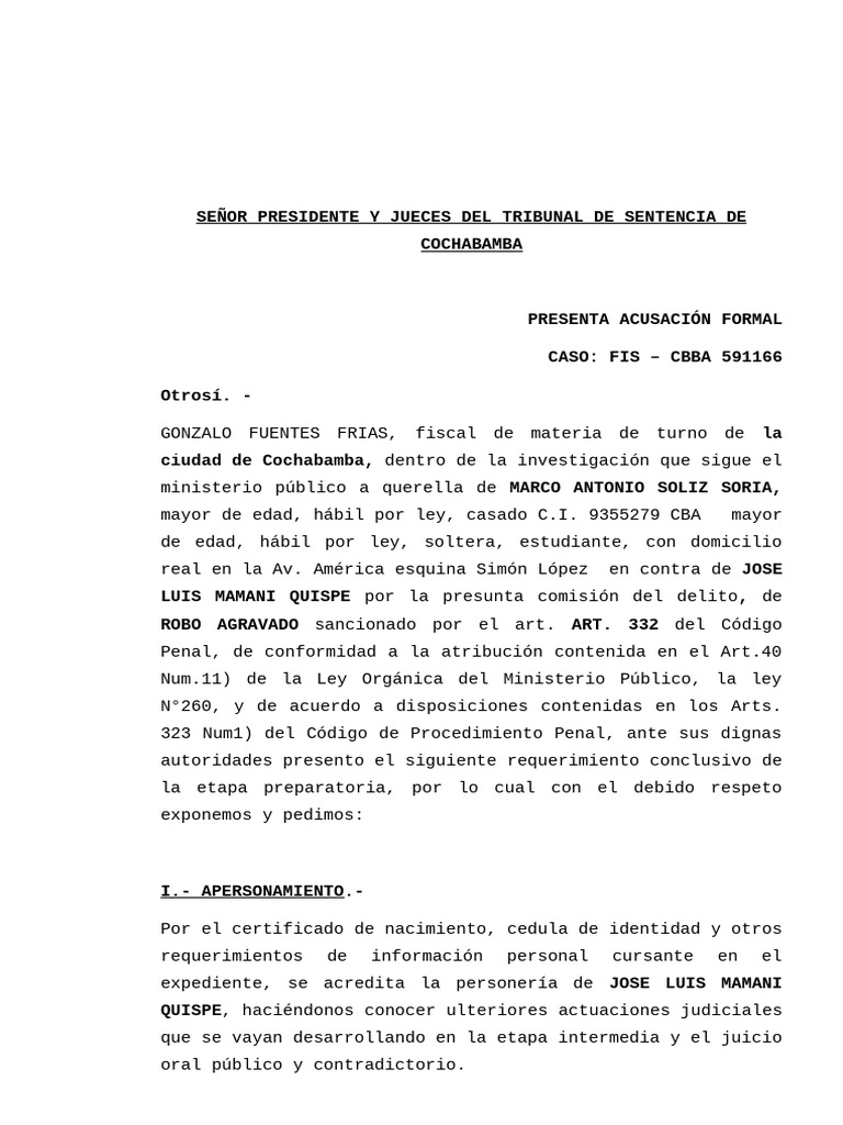 PRESENTA ACUSACIÓN FORMAL
