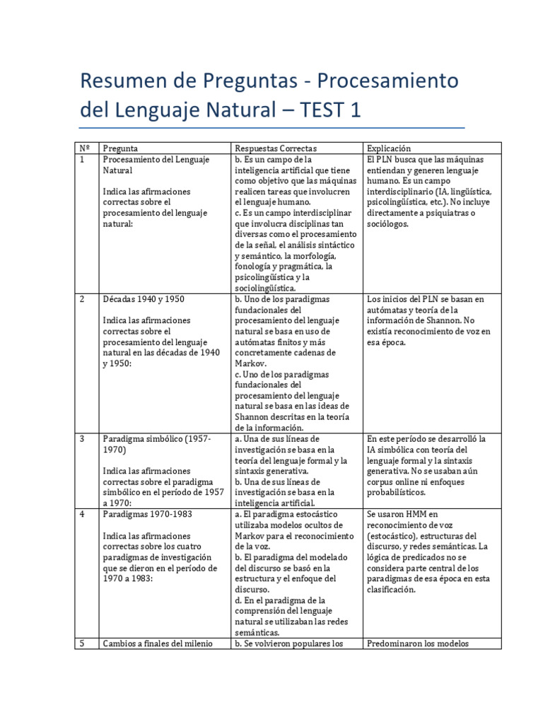 del Lenguaje Natural – TEST 1