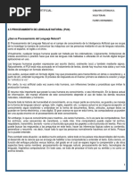 1 Procesamiento del Lenguaje b. Es un campo de la El PLN busca que las máquinas