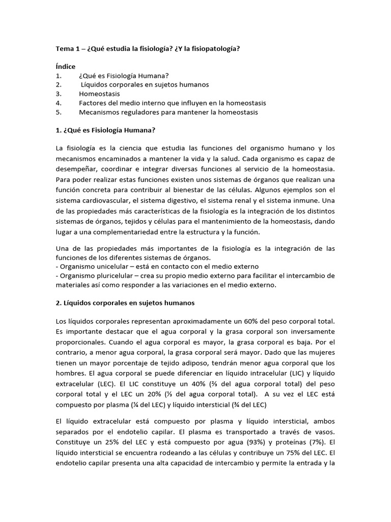 Tema 1 – ¿Qué estudia la fisiología? ¿Y la fisiopatología?