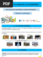 1.2 La empresa o unidad econmica La empresa que a los fines de este captulo podemos considerar como sinnimo de este organismo e institucin, es donde preferentemente se utiliza la contabilidad. Por consiguiente, conviene presentar algunas clasificaciones que contribuyan a la formacin de una idea clara y precisa de la importancia de la contabilidad; sin que el orden signifique jerarqua o importancia de una sobre otra. En una primera clasificacin, considerando el tamao o magnitud de la empresa en funcin de sus inversiones, ventas, utilidades, nmero de trabajadores u otro indicador, se distinguen la pequea, la mediana y la gran empresa. En una segunda clasificacin, de acuerdo al sector econmico al que pertenezcan, se identifican las empresas del sector primario, secundario, terciario y el cuaternario. Al sector primario de la economa corresponden las empresas extractivas relacionadas con recursos agrcolas, mineros y del mar; al sector secundario las empresas manufactureras en donde se elaboran productos a partir de la adecuacin o transformacin de materias primas; al sector terciario corresponden las empresas relacionadas con el comercio y los servicios y al sector cuaternario corresponderan las empresas relacionadas con la informacin y las comunicaciones (informtica y telemtica). Una tercera clasificacin permite identificar a las empresas, de acuerdo al giro u objeto social de sus negocios, en cuatro grupos: las manufactureras dedicadas a la transformacin o adecuacin de productos elaborados o semielaborados; las comerciales dedicadas a la compra y venta de bienes de consumo o durables; las de servicios dedicadas al comercio de intangibles y prestacin de servicios y las financieras, grupo de caractersticas comerciales y de servicios a la vez, que por su importancia e incidencia en la economa de los pases se le ha considerado separada de las anteriores y cuya funcin es la intermediacin financiera y prestacin de servicios financieros y de negocios. La cuarta clasificacin seala tres grupos de empresas atendiendo a la identidad de los propietarios del Capital. Las empresas privadas que son de propiedad de particulares, las pblicas, cuyos capitales son de propiedad del Estado y las mixtas, semifiscales o semiprivadas que integran capitales privados y pblicos cualquiera sea su proporcin.