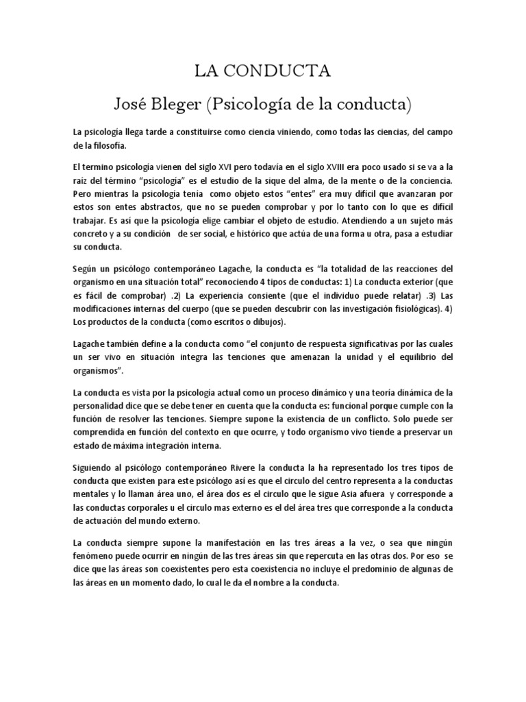 LA CONDUCTA Jos Bleger (Psicologa de la conducta)