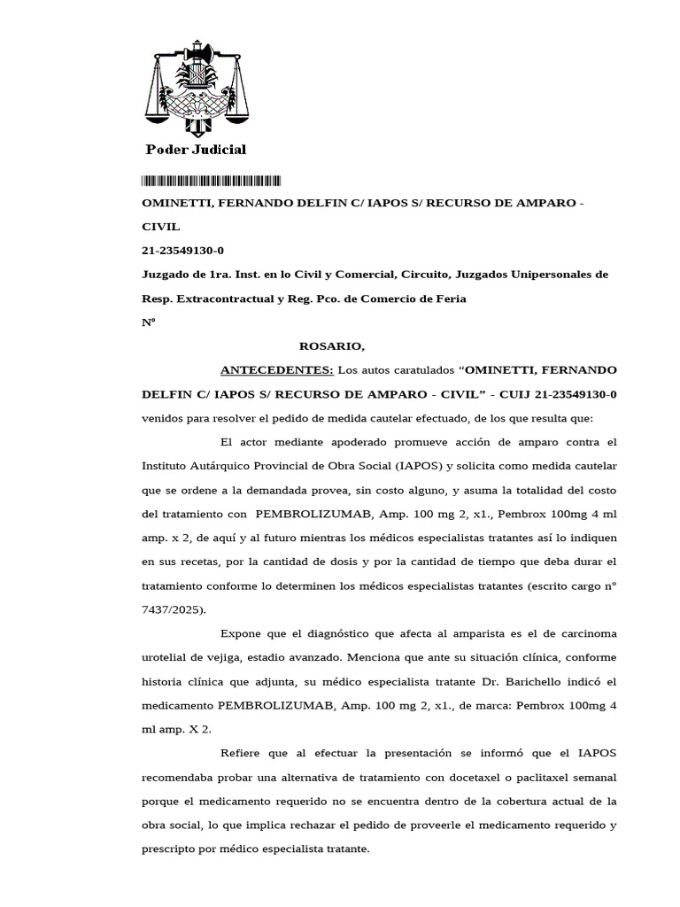 OMINETTI, FERNANDO DELFIN C/ IAPOS S/ RECURSO DE AMPARO -