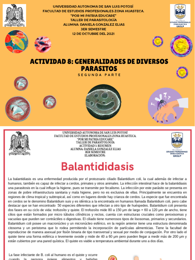 humanos, también es capaz de infectar a cerdos, primates y otros animales. La infección intestinal hace de la balantidiasis