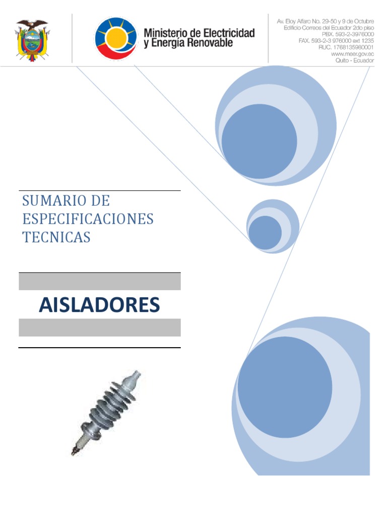 ESPECIFICACIONES TCNICAS GENERALES AISLADOR DE RETENIDA, DE PORCELANA, CLASE ANSI 54-2 DESCRIPCIN MATERIAL Norma de fabricacin Clase Norma del esmaltado DISTANCIAS CRTICAS. Distancia de fuga. VALORES MECNICOS Resistencia a la tensin VALORES ELCRICOS. Flameo de baja frecuencia en seco Flameo de baja frecuencia en hmedo DETALLES CONTRUCTIVOS ACABADO Color del esmalte EMBALAJE Empaque del lote Unidades por lote Peso neto aproximado CERTIFICACIONES Material utilizado, propiedades elctricas y mecnicas MUESTRAS