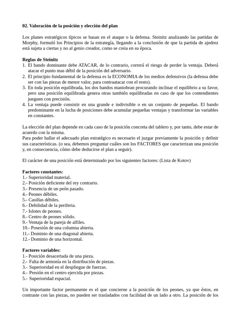 La elección del plan depende en cada caso de la posición concreta del tablero y, por tanto, debe estar de