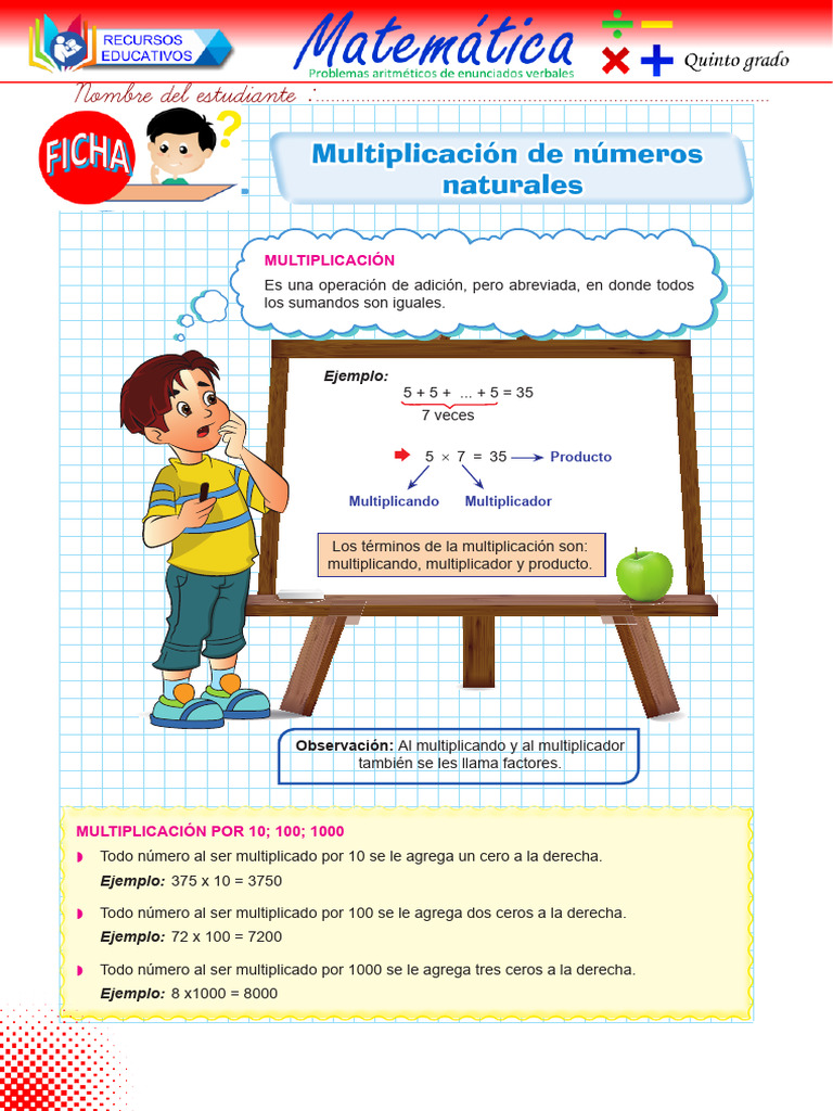 MULTIPLICACIÓN POR 10; 100; 1000
