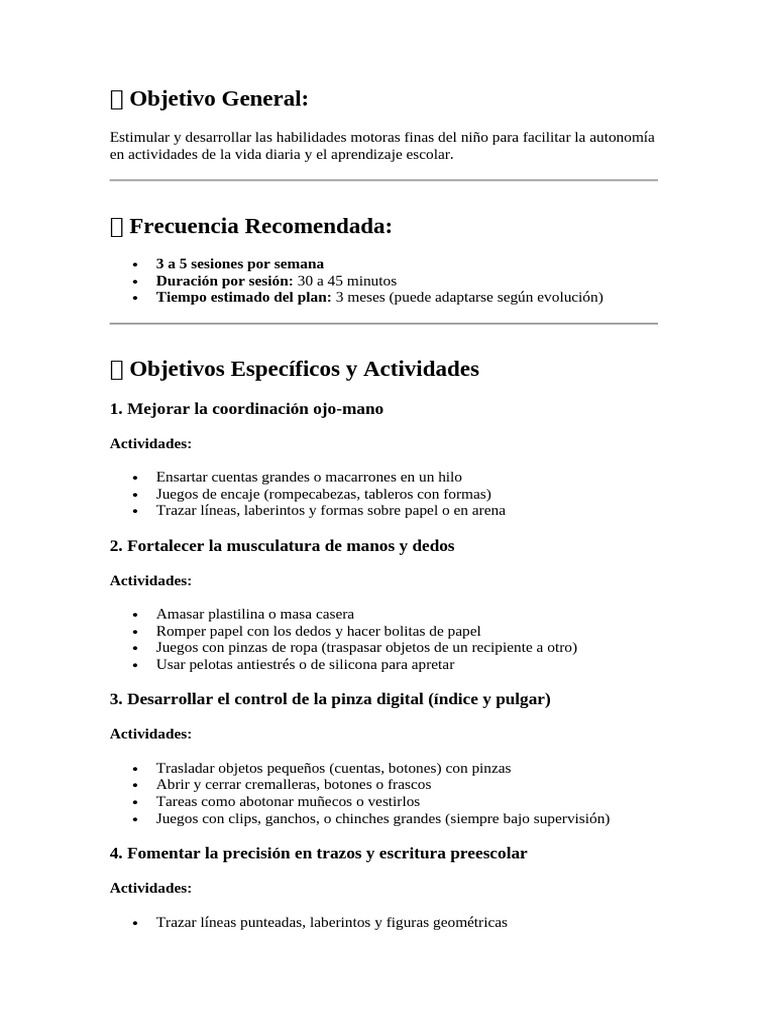 Estimular y desarrollar las habilidades motoras finas del niño para facilitar la autonomía