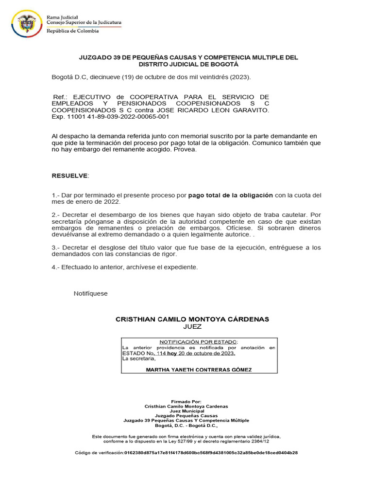 COOPENSIONADOS S C contra JOSE RICARDO LEON GARAVITO.