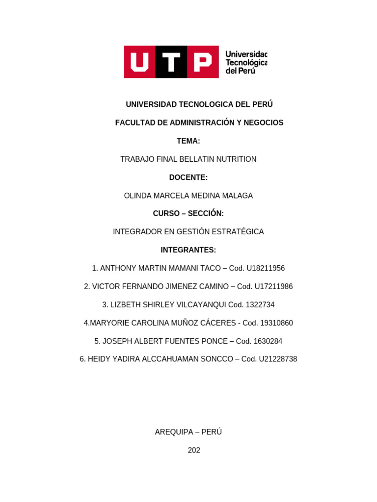 Bellatín Nutrición es una microempresa peruana dedicada a la elaboración y