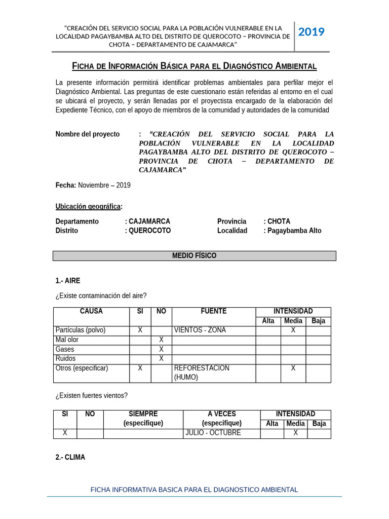 FICHA INFORMATIVA BASICA PARA EL DIAGNOSTICO AMBIENTAL